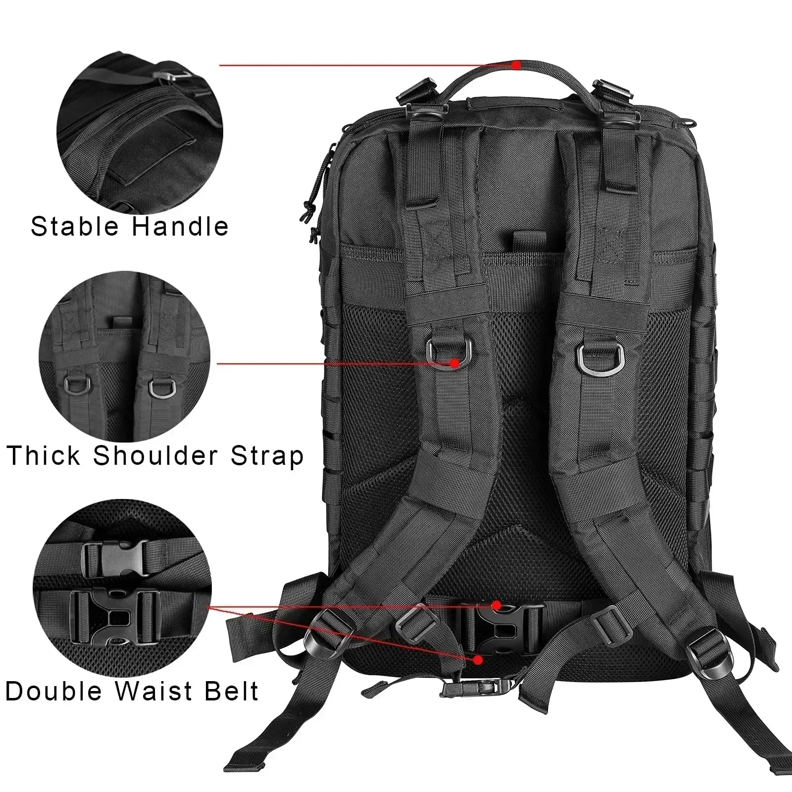 • MOLLE System :The MOLLE system allows you to attach additional gear to the backpack, enhancing its functionality and convenience.