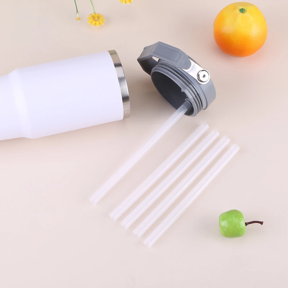 5Pcs Replacement Straws Wear-Resistant Reusable Straws Clear Straws Plastic Straws for Stanley 30oz Accessories Features: 1.Safe Sipping Solution: Crafted from PP material, our replacement straw guarantees a non-toxic and taste-free drinking experience, ensuring your beverage remains pure and enjoyable. 2.Perfect Cup Fit: Designed specifically for Stanley 30oz tumblers, our reusable straw provides a seamless fit; it can also be easily trimmed for a custom fit with your 20oz cups, providing versatility and convenience. 3.Durable Drinking Accessory: Constructed with high-quality materials, the clear straw boasts exceptional resistance to breaking and wear, maintaining its shape and integrity even after repeated use and drops. 4.Eco-Friendly Choice: Embrace sustainability with our long straw's recyclable material, contributing to a cleaner environment while aligning with the eco-conscious values of modern green living. 5.Long-Lasting Design: Our plastic straw's robust construction not only resists deformation and breakage but also ensures a long lifespan, offering both reliability and value with every sip.
