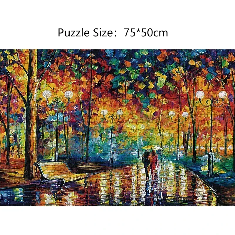 75*50cm Adult 1000 Pieces Jigsaw Puzzle Rainy Night Walk Beautiful Scene Stress Reducing Toys Christmas Gift