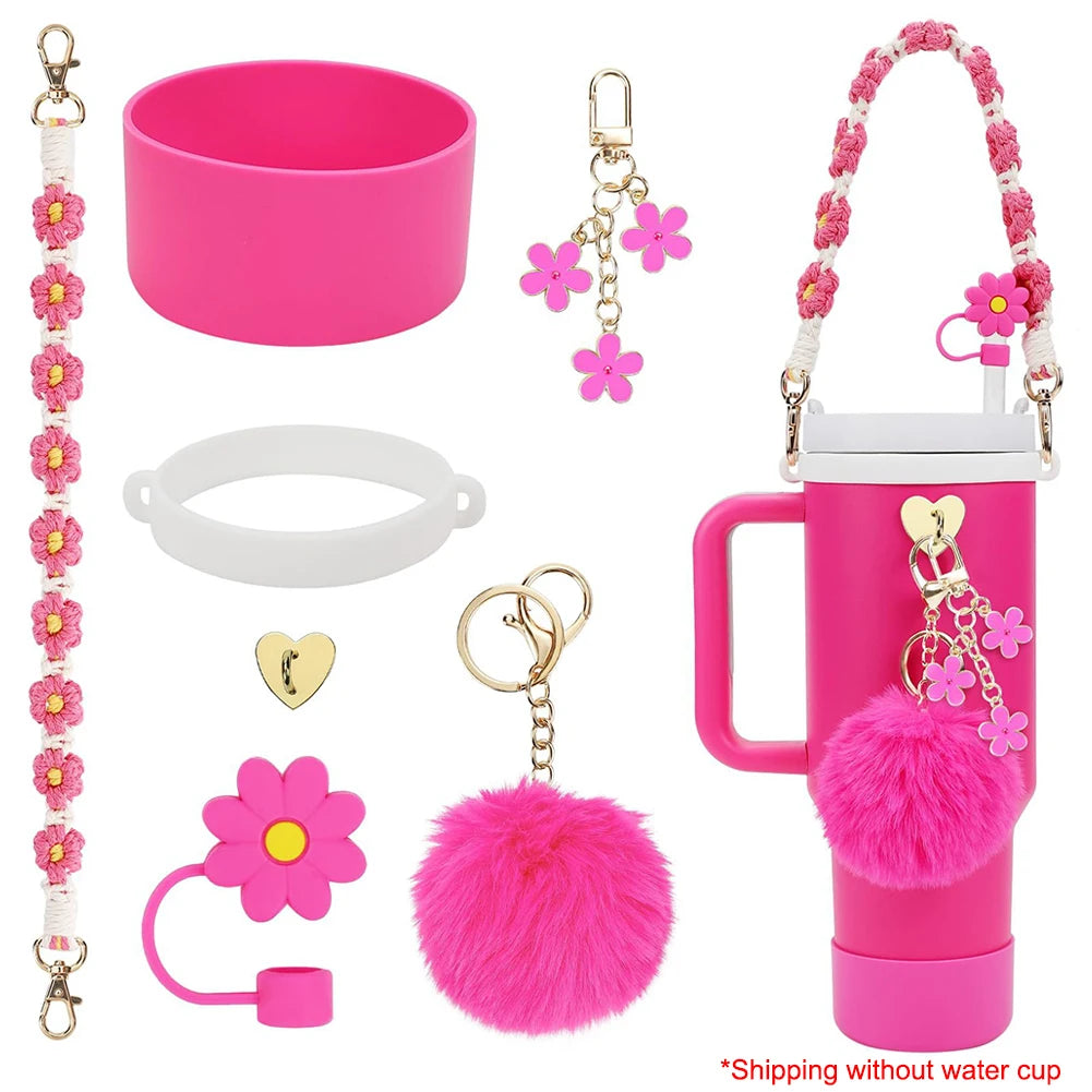 2. Convenient Carry Handle: This charm set includes a handy strap for easy transportation of your beverage container, ensuring your favorite drink is always within reach while on the go.
