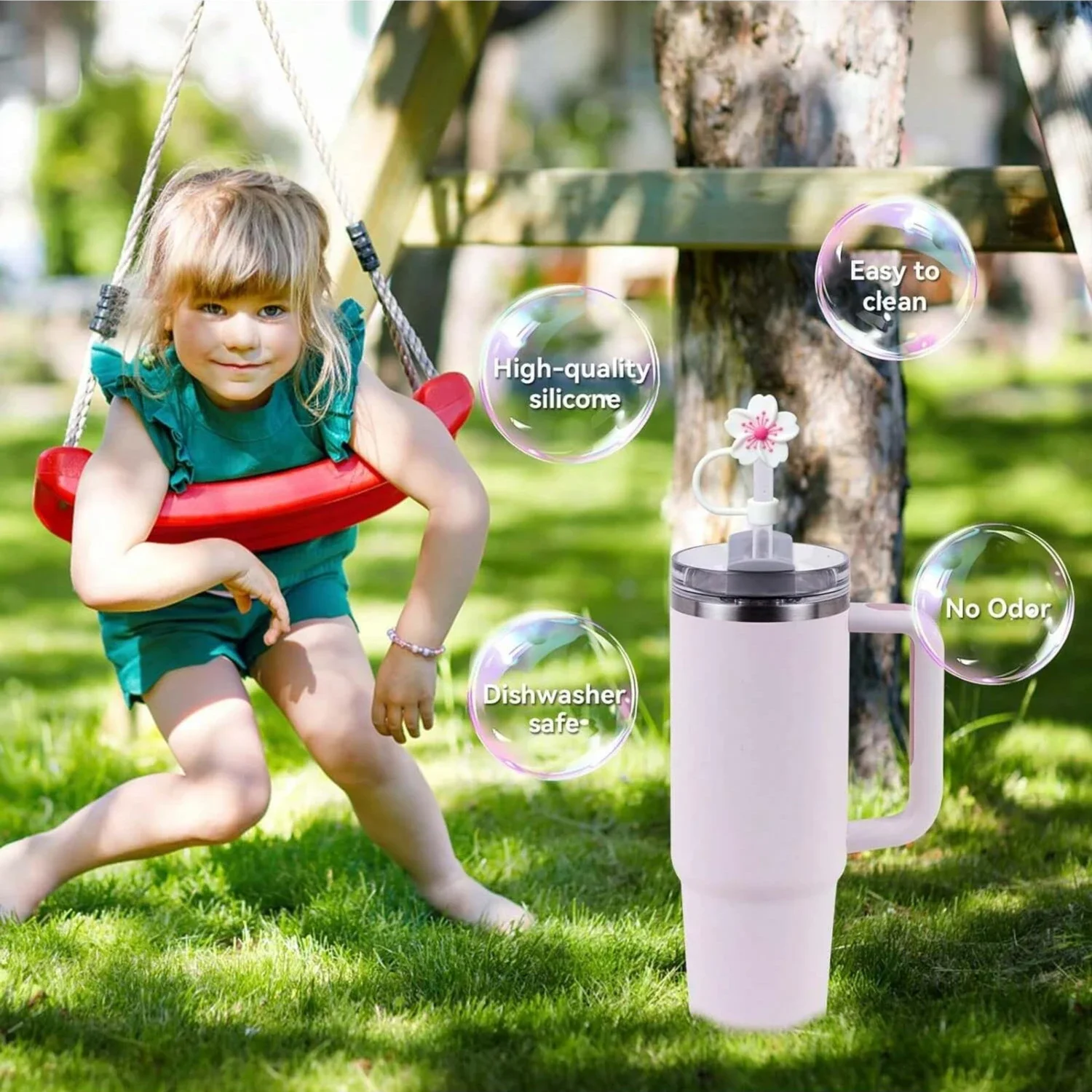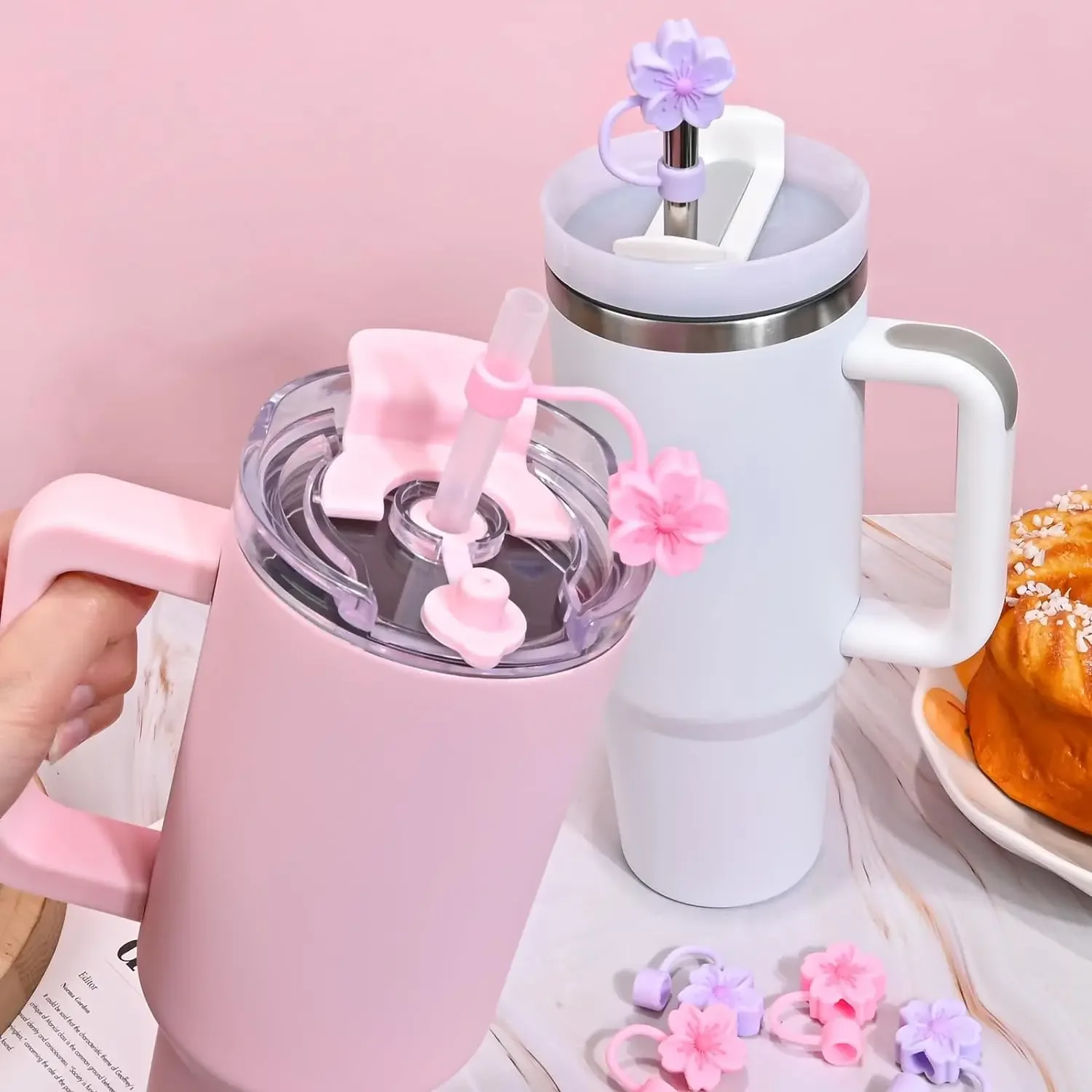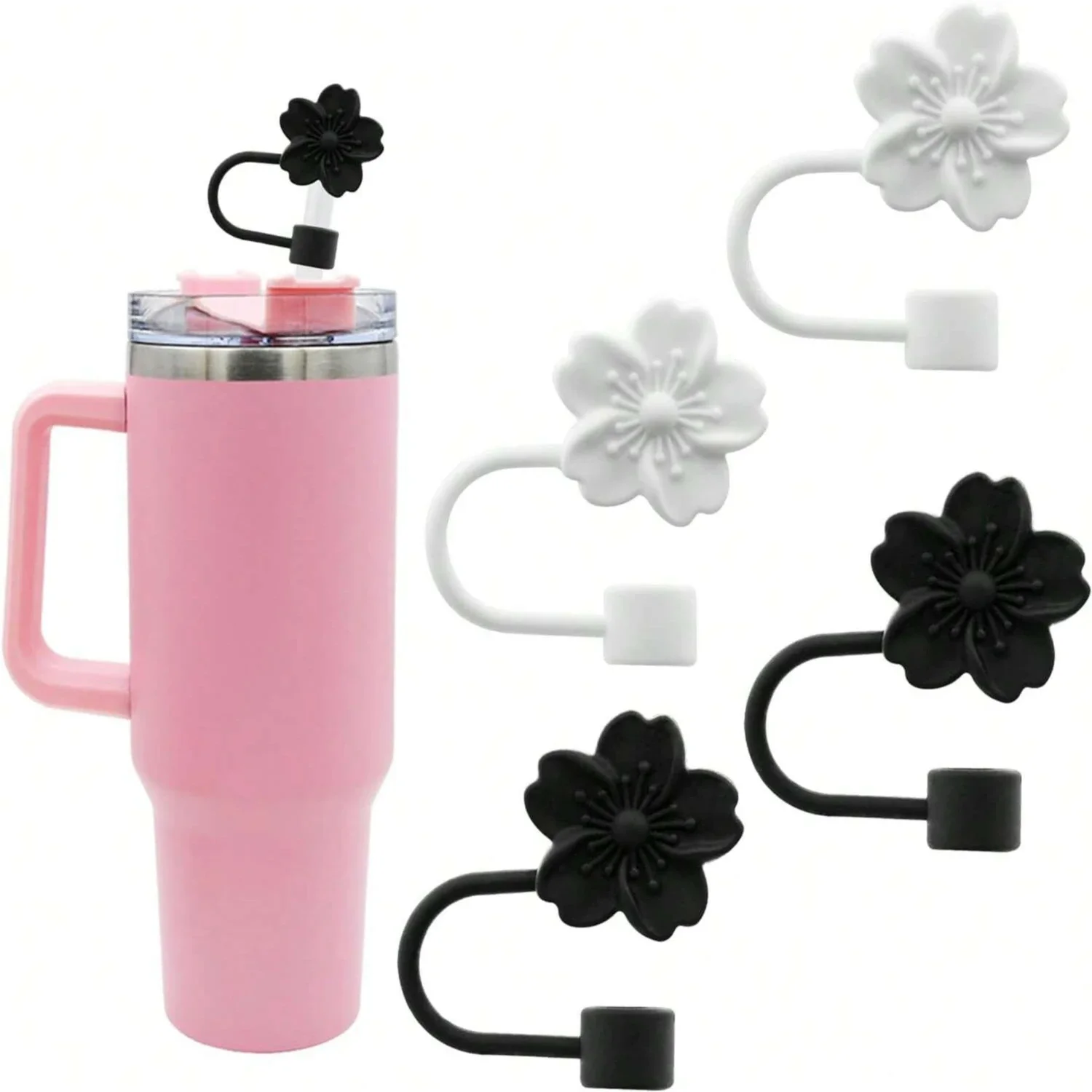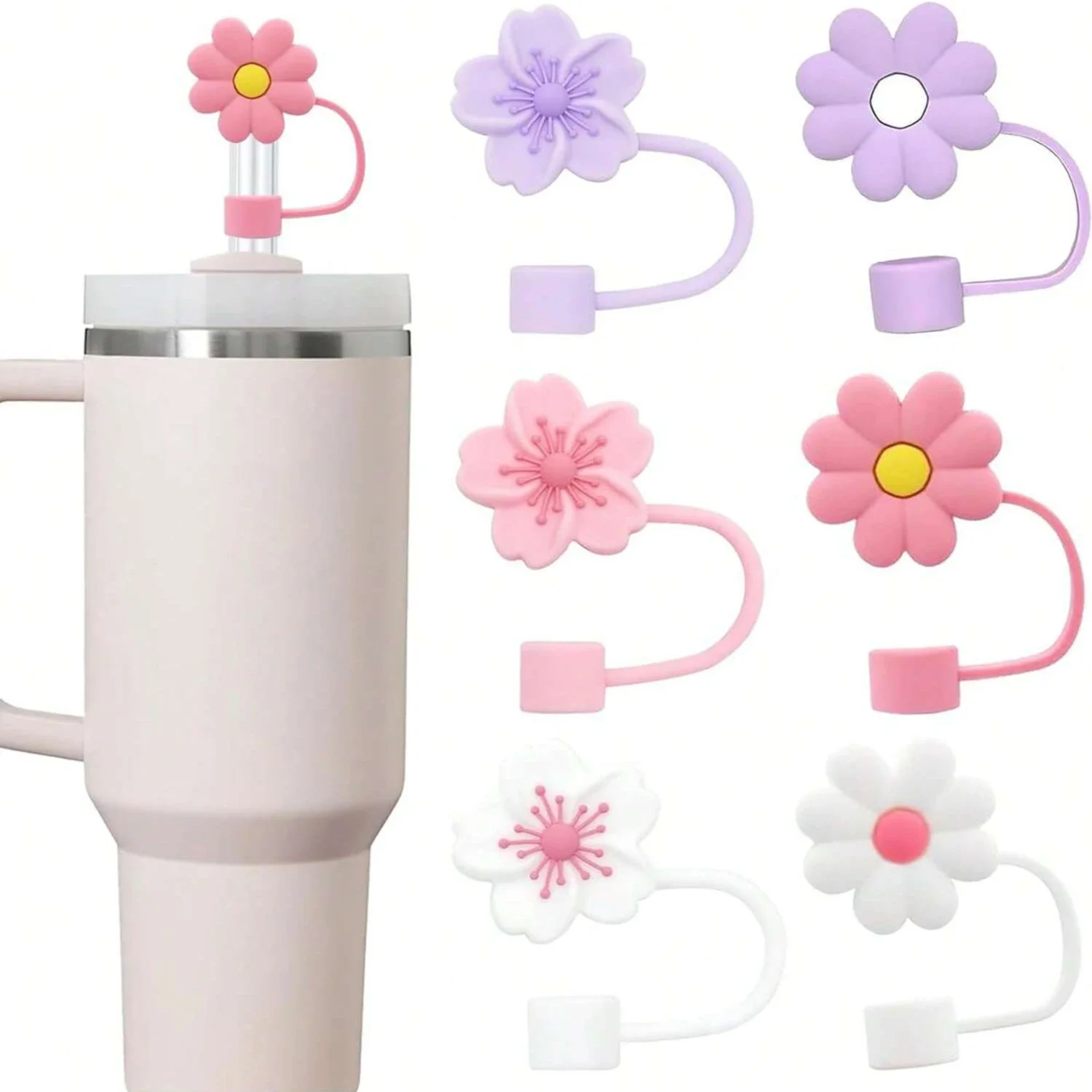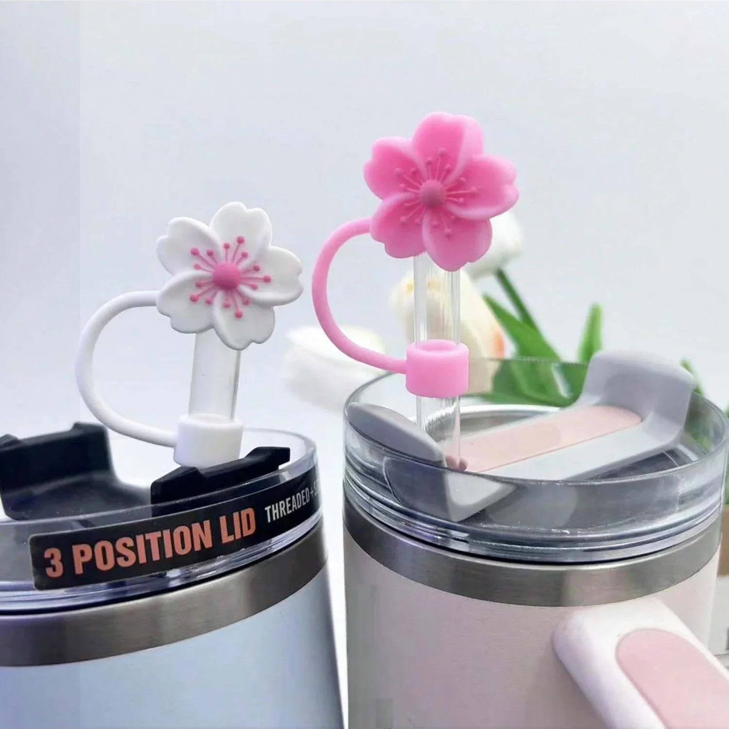 Begonia Flower Straw Cover Cap for Stanley Cup 10mm Silicone Straw Tips Lids Reusable Dust-Proof Straw Topper for Party Decor
