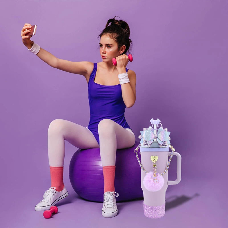 2.[Fashionable Combination]:our water bottle handle is equipped with advanced silicone safety ring and leather metal handle band, which has unparalleled safety while not easy to stain and easier to clean; the style bow decoration makes your cup stand out and is a fashionable accessory for your water bottle.