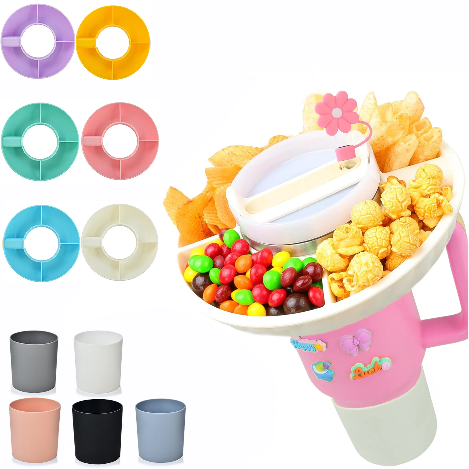 - Unique Design: This snack bowl features four independent compartments, effortlessly accommodating a variety of snacks like popcorn, chips, candies, and more. It pairs perfectly with Stanley 40oz 1.0/2.0 cups.