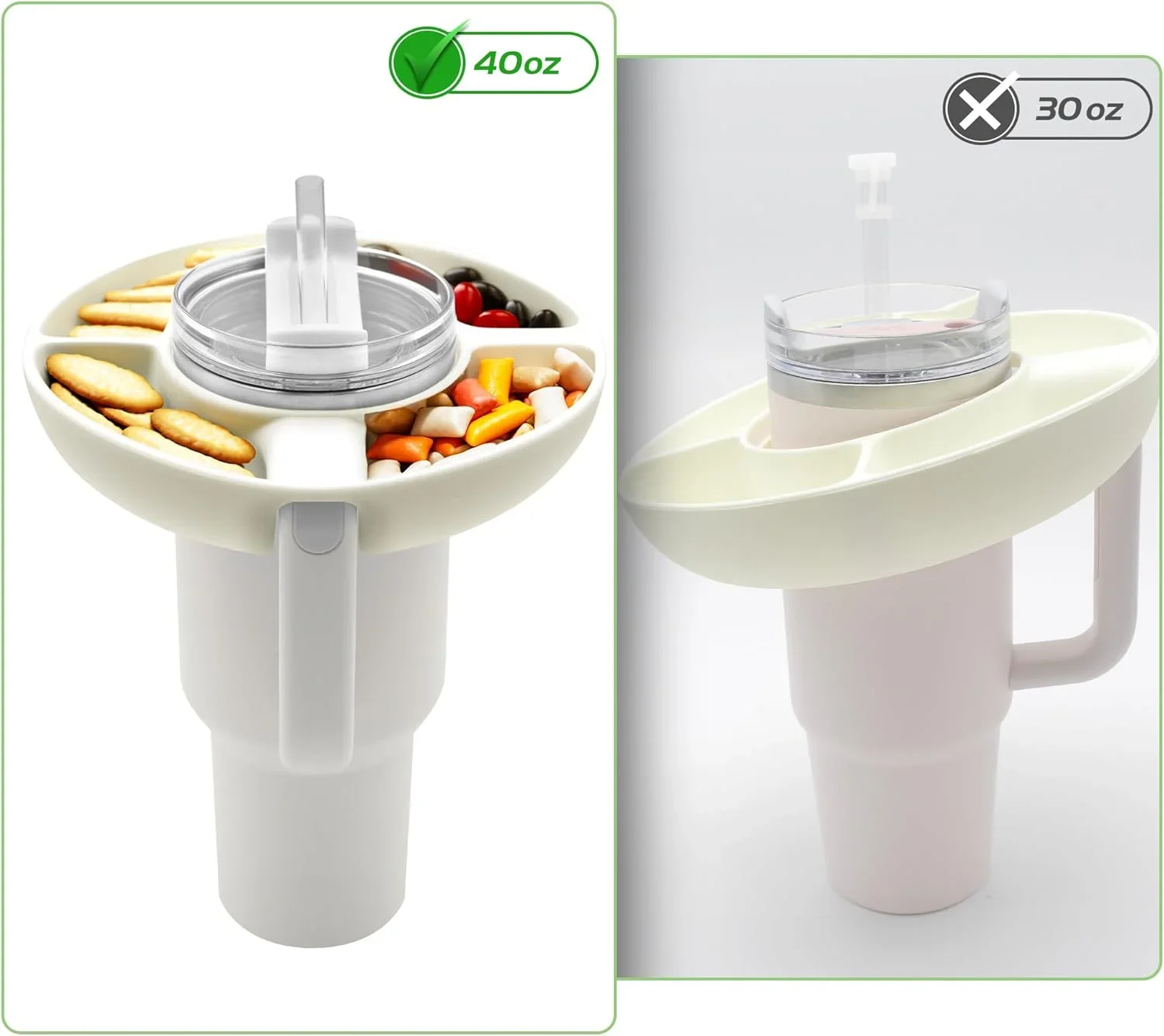 【Designed for Stanley 40 oz Tumbler】: Stanley Cup ensures a seamless fit. Simply align the slot of the snack containers with the cup's handle and press – it's that easy! No more juggling or spills, just pure snacking convenience.