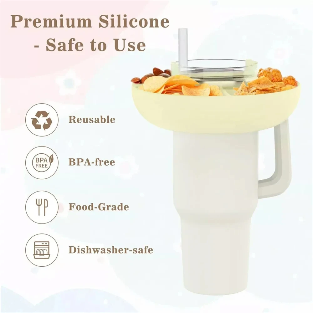 feature: stanley cup 40oz,Quencher Stanley Cup,cup tray,snacks tray,Tumbler with Handle,Silicone Snack Tray,Food Tray Holder Outdoor,cup holder bowl,water bottle,Cup Accessories